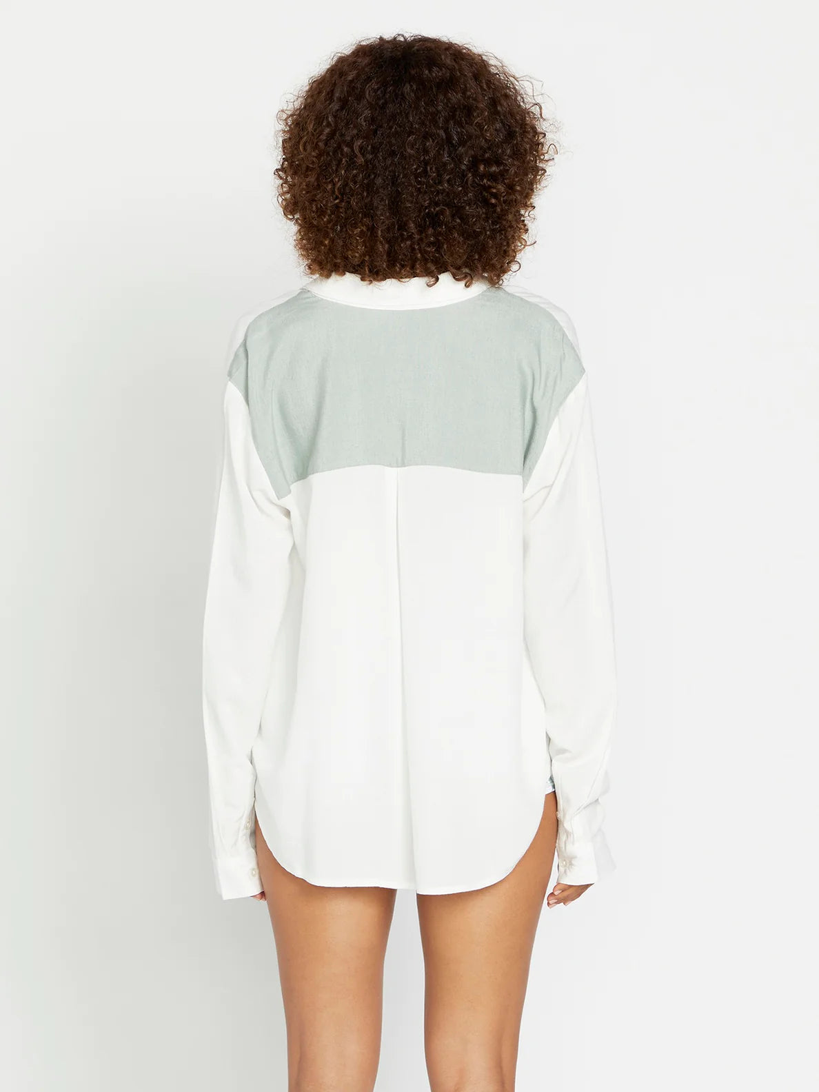 Oversized button up shirt with contrast color back yoke and shirttail hemline