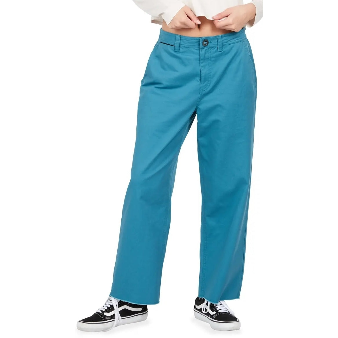 Designed by female skateboarders, for female skateboarders, this pant from Volcom is your new favorite skate companion. Built with an elastic waist, deep pockets, and a diy inspired hem, you'll be comfortable and confident to handle any situation.
