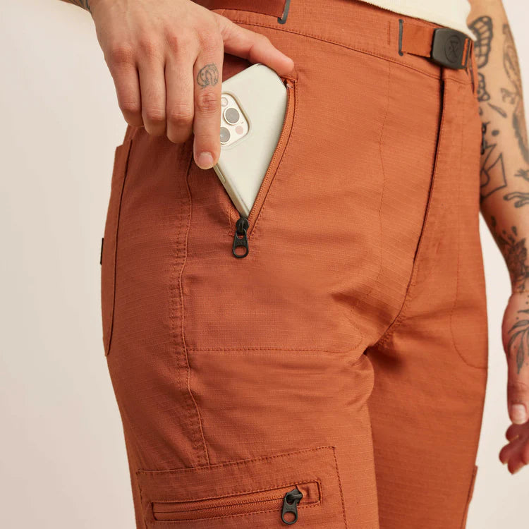 The ultimate hiking pant. Made from ripstop stretch cotton, it features easy-access zip pockets, a high-rise waist with a secure, and adjustable belt.