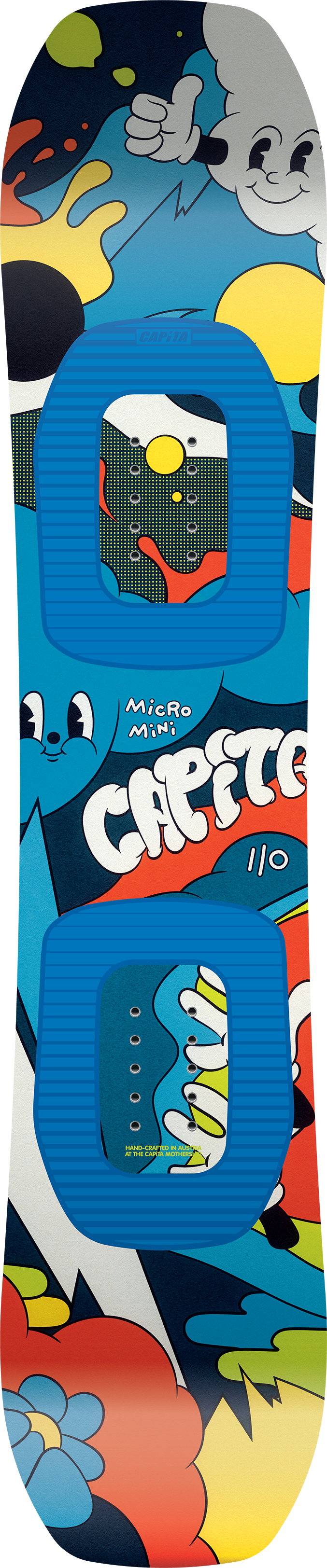 The Micro Mini is the perfect board for kids getting their first experiences in the snowboarding game. Featuring a unique convex shape with edges that are raised off the snow, smaller riders (and their parents) won't have to worry about catching an edge—keeping kids stoked and progressing for years to come. A 45º Micro Glass makes for a uniquely lightweight board with a flex relative to small rider weights. This vital configuration detail allows for the most ideal turning—and learning—experiences.